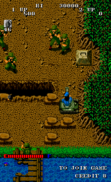 The game is a 1 or 2 player survival shooting game, in the mould of Ikari Warriors. Play can be simultaneous or either player can join in at any stage during the game. The players have machine guns to mow down baddies and grenades to lob at them. Along the way, the players can also get into tanks and cause maximum damage (and get further into the game). There are bonus weapons too, when certain enemies are killed.